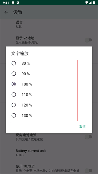3、找到文字缩放选项并点击,弹出包含不同缩放比例的选择窗口。