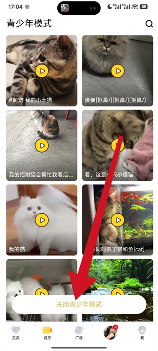 2、在青少年模式页面的底部,点击关闭青少年模式,触发密码验证流程。
