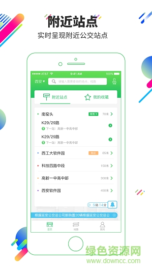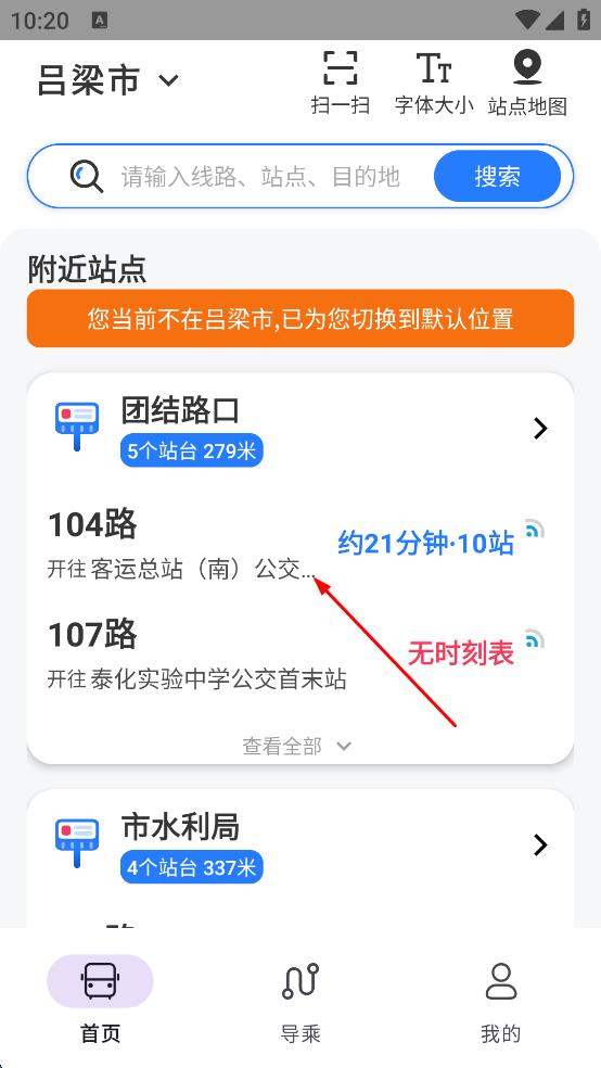 自动定位当前位置。呈现你附近站点和线路信息“易公交”截图
