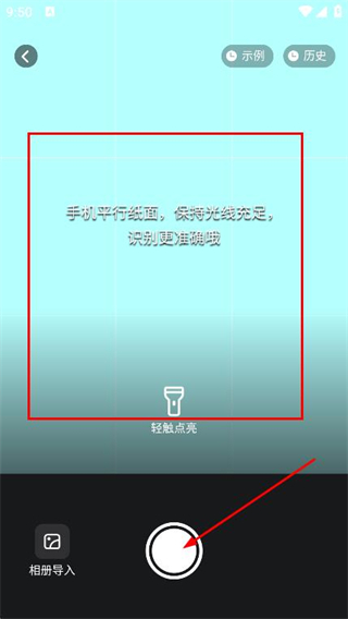 3、将作业放置在拍摄框内,点击拍摄,即可完成作业批改。