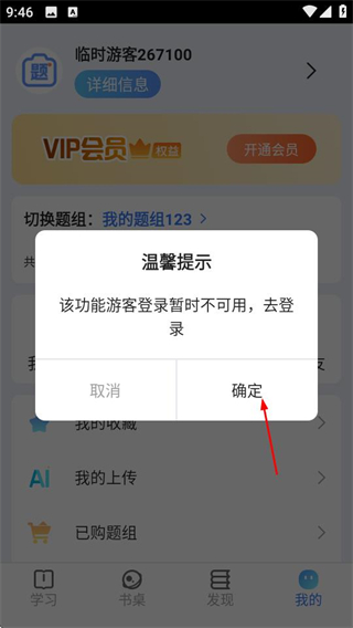 2、在个人中心页面,弹出提示框,点击确定按钮进入登录页面。