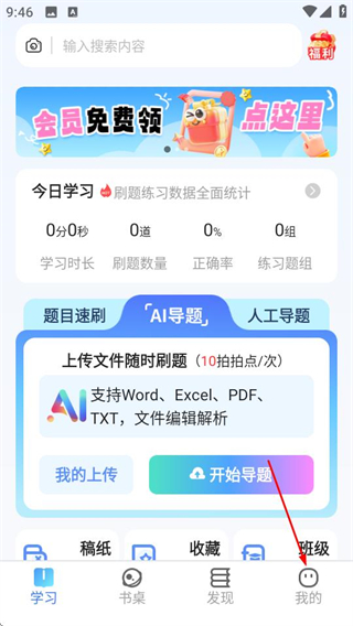 1、在拍拍题首页,点击底部的我的选项,进入个人中心页面。