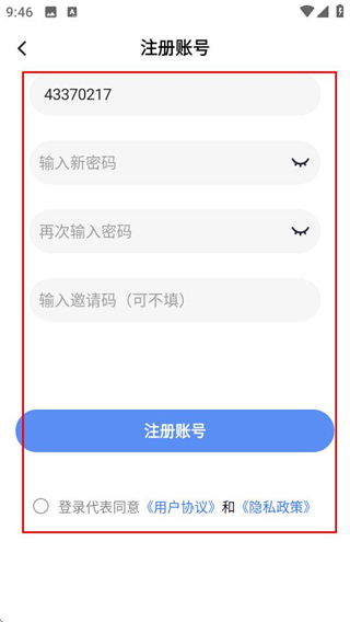 4、在注册页面,填写信息并勾选协议后点击注册账号,完成账号注册。