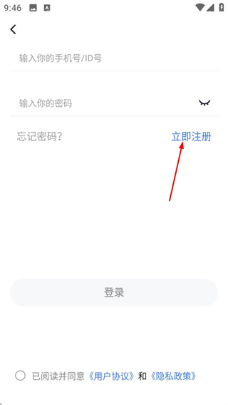 3、在登录页面,点击立即注册选项,进入注册账号页面。