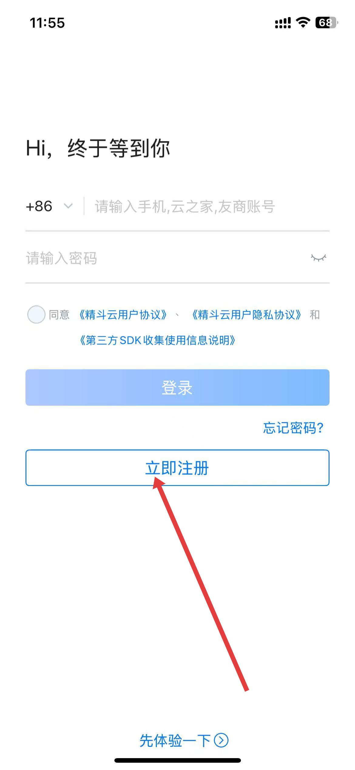 1、点击界面中的立即注册选项,进入账号注册页面。