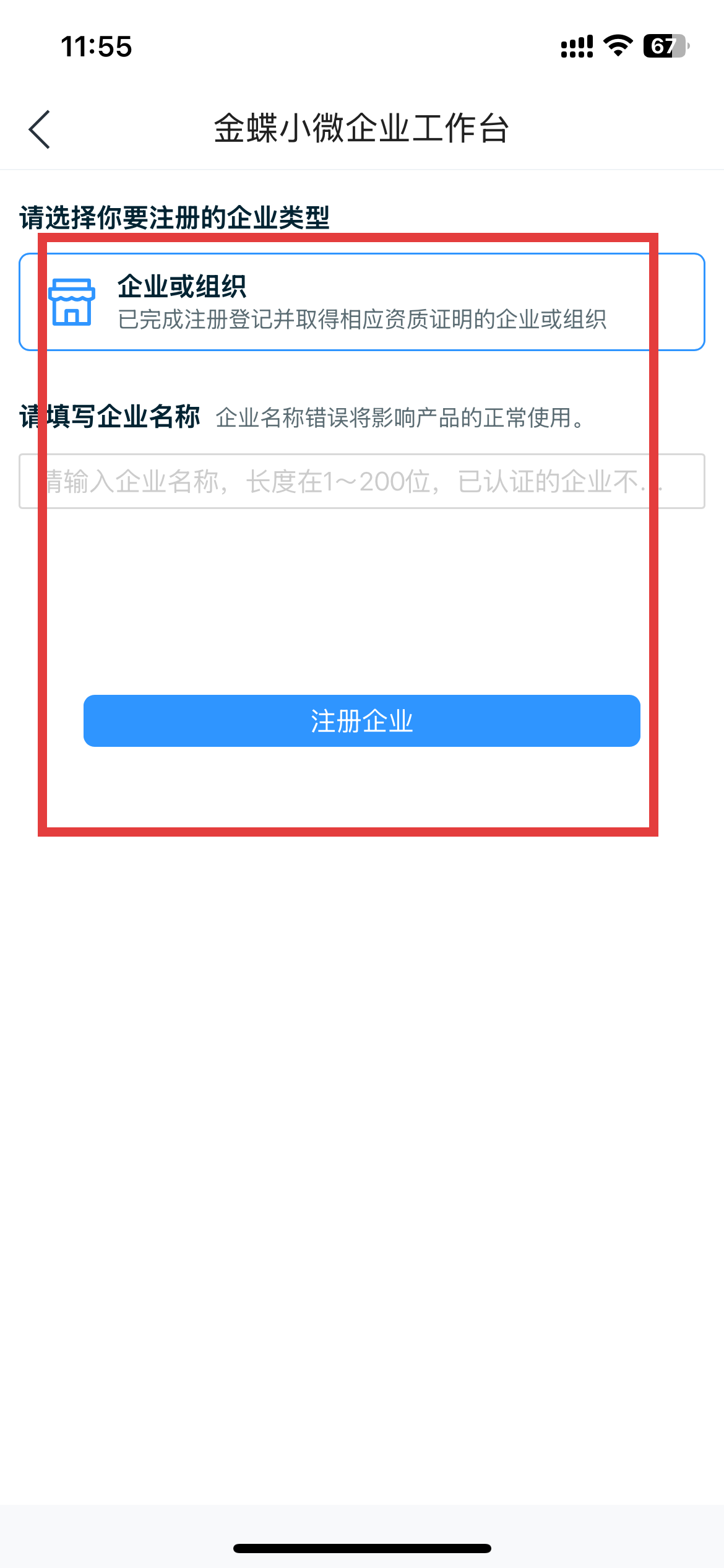 3、勾选隐私政策,点击下一步,进入企业类型选择页面。