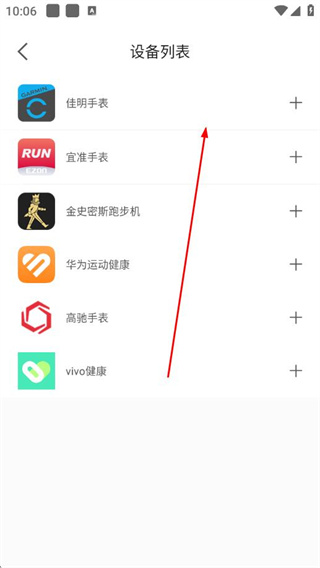 1、打开EPK的“运动”页面,点击智能设备+,进入设备列表页面。