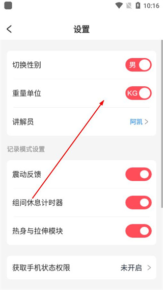 4、在通用设置页面中,找到重量单位选项,点击对应的开关即可切换单位。
