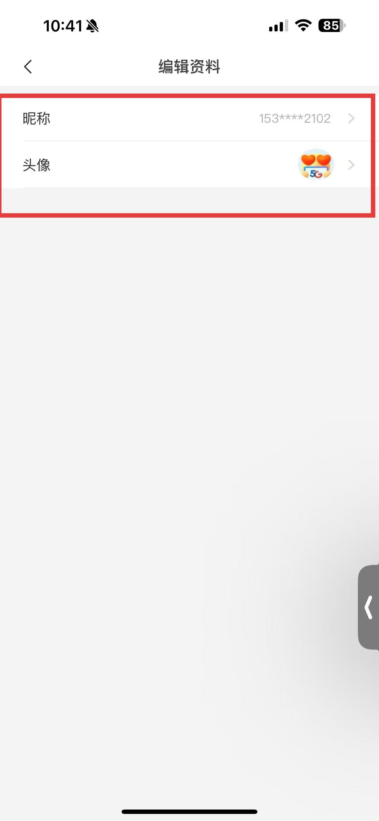 4、在编辑资料界面,点击昵称可修改名字,点击头像可选择新图片更换头像,完成个性化设置。