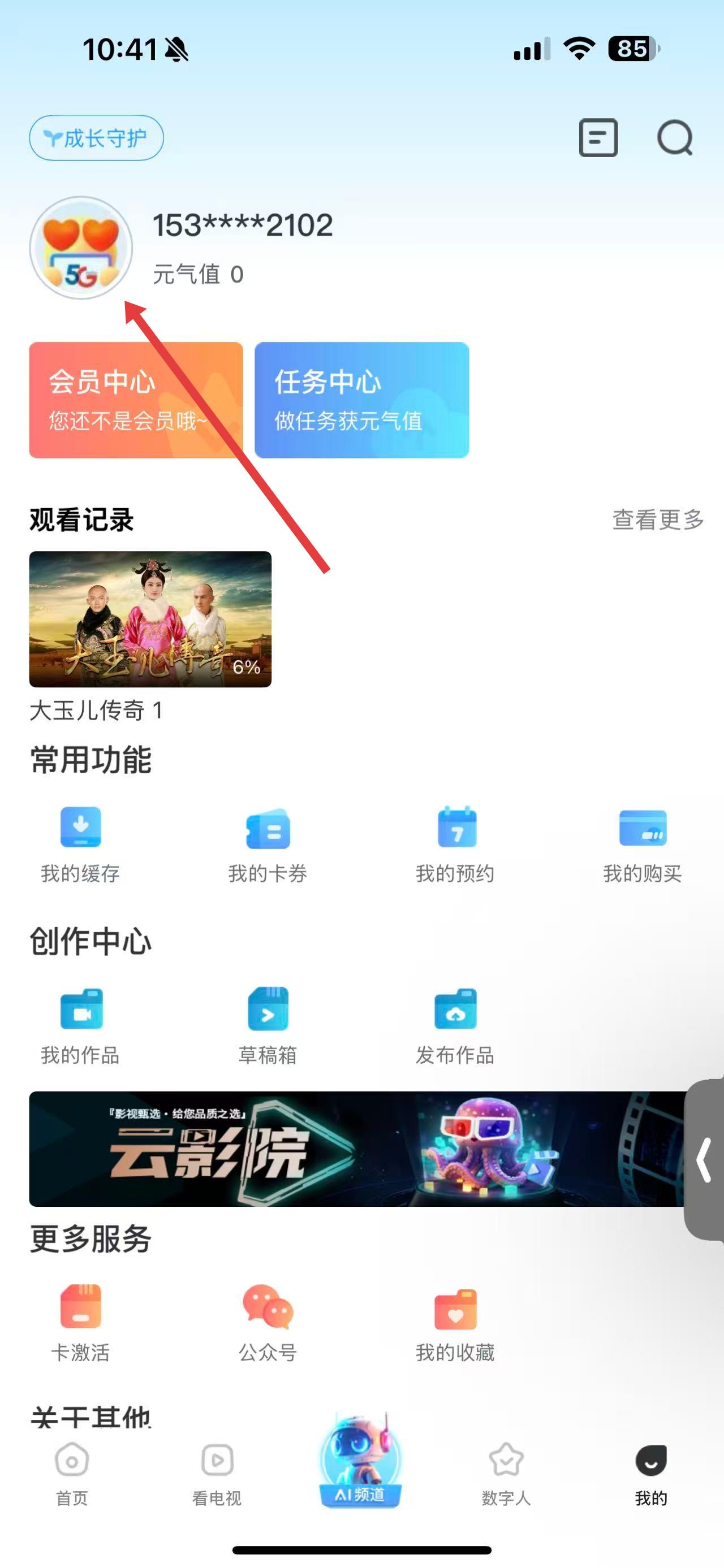 2、在个人页面中,点击头像和手机号区域,进入个人信息展示页面。