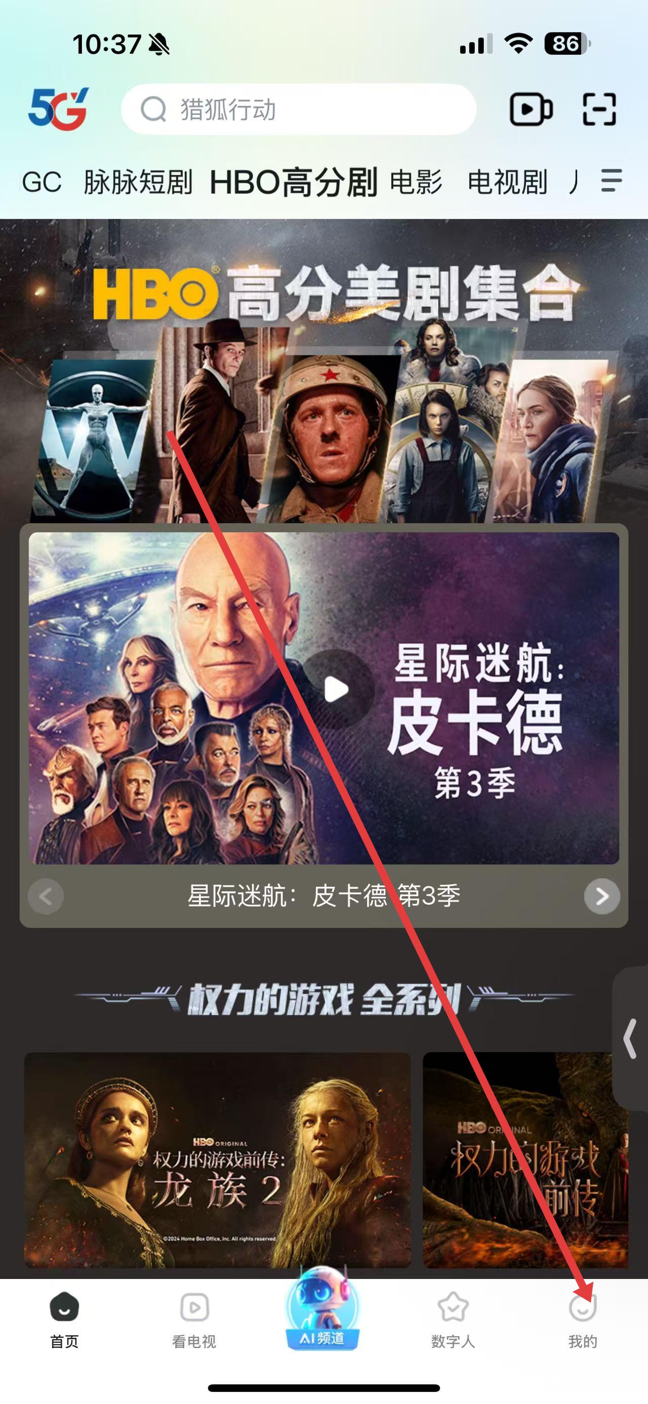 1、打开天翼超高清应用,点击底部导航栏最右侧的我的选项,进入个人页面。
