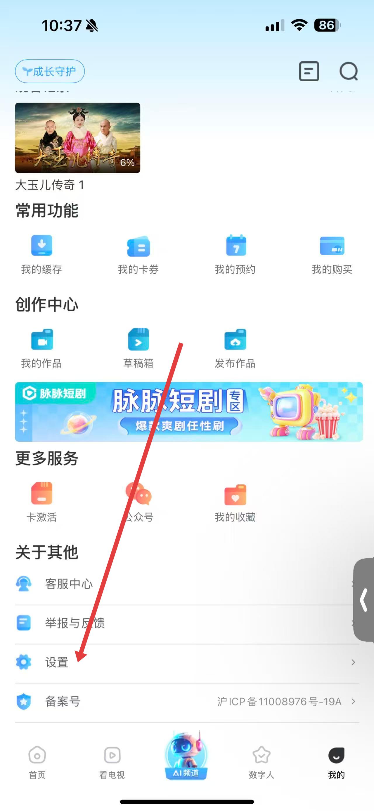 2、在个人页面中,下滑找到设置选项并点击,进入设置界面。