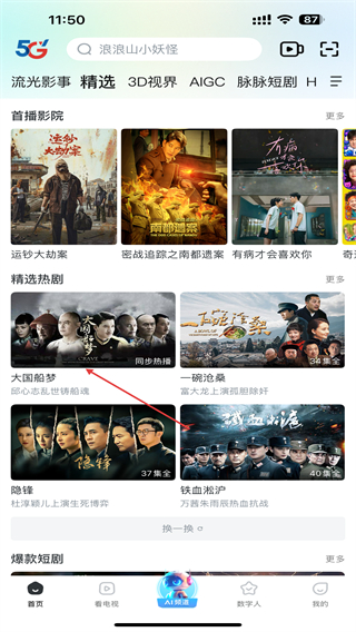 1、打开天翼超高清,在首页找到目标视频,点击进入该视频的播放页面。