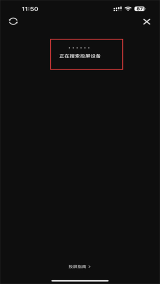 3、系统会自动进入正在搜索投屏设备状态,等待搜索附近的可投屏设备。