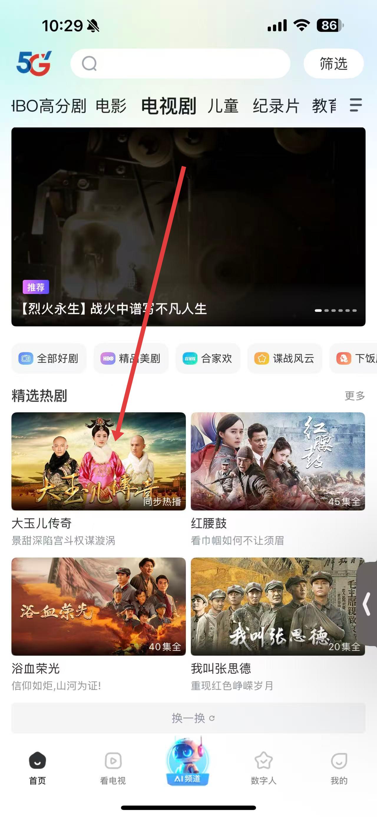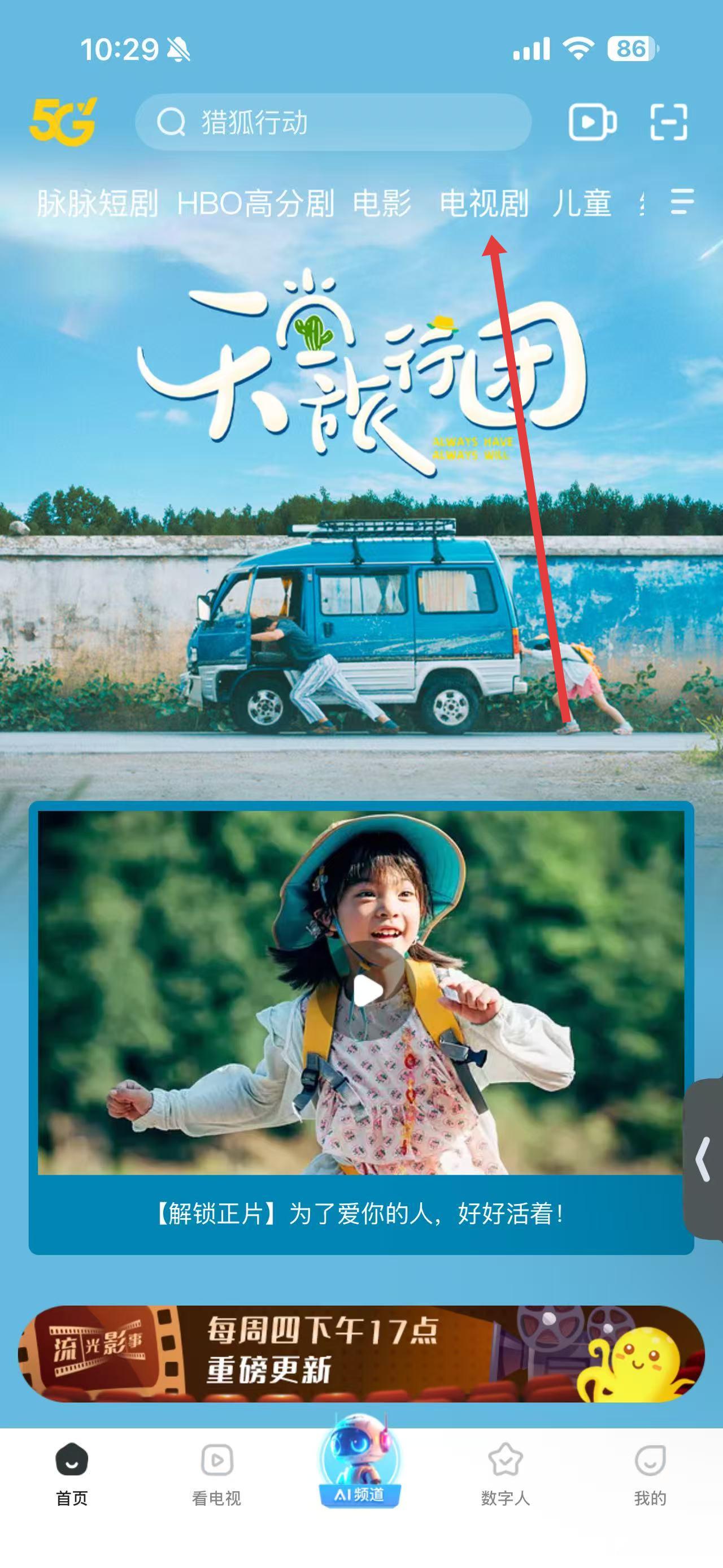 1、进入天翼超高清APP,进入首页,选择点击电视剧。