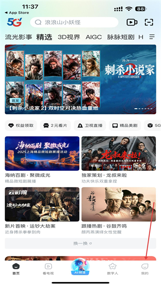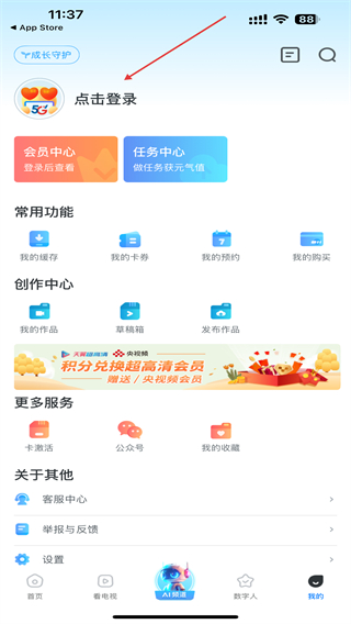 1、启动天翼超高清,点击底部导航栏最右侧的我的选项,进入个人中心页面。