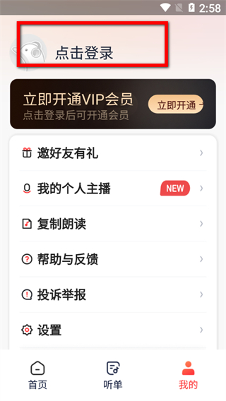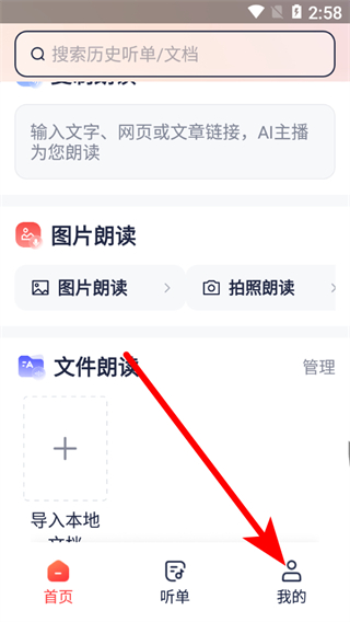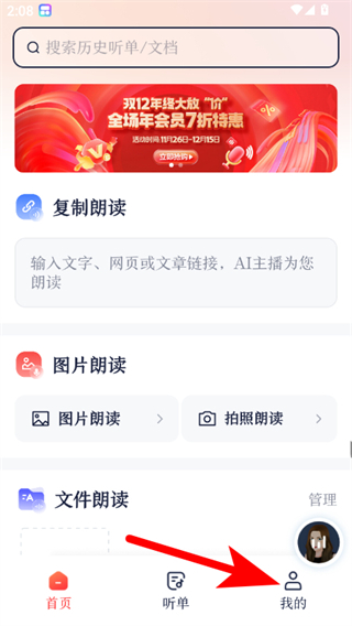 1、在讯飞有声app首页,点击右下角我的选项,进入个人中心界面。