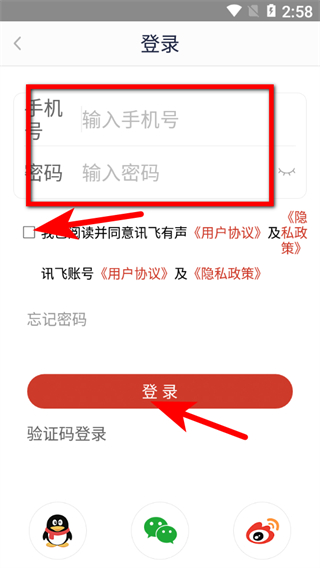 4、输入手机号和密码,勾选同意后,点击登录按钮,即可完成密码登录操作。