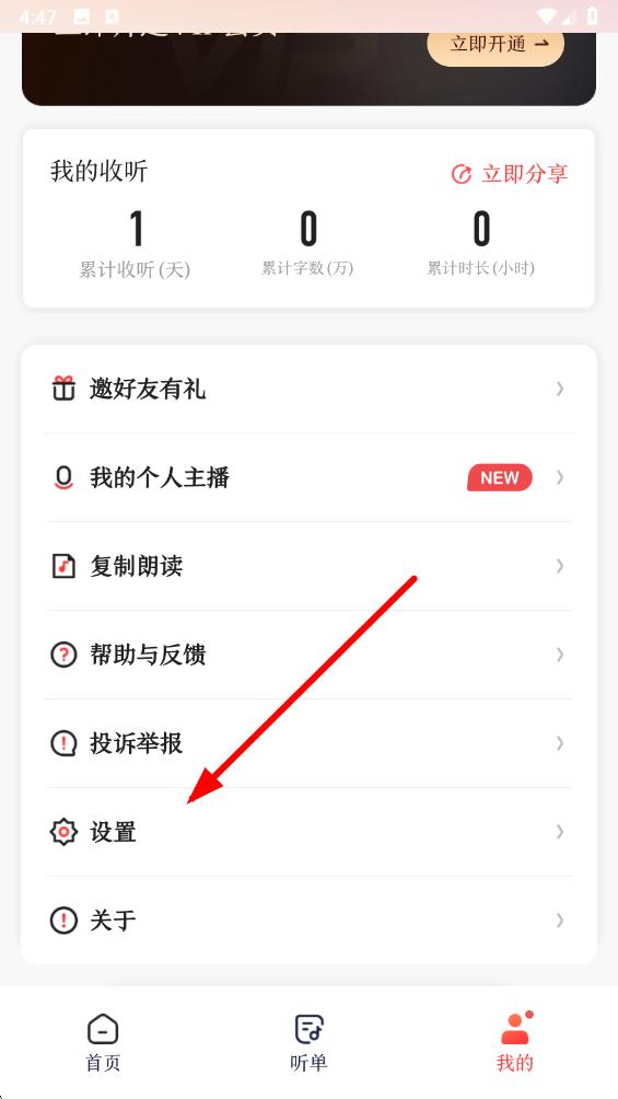 1、打开讯飞有声app,点击底部导航栏最右侧我的选项,进入个人相关设置界面。