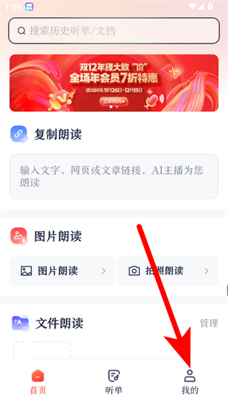 1、在讯飞有声首页,点击我的选项,进入个人中心界面。