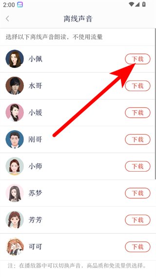 4、在该界面点击对应声音右侧下载按钮,即可完成离线声音设置。
