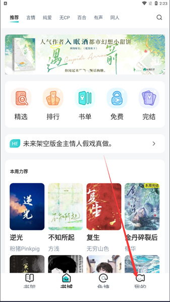 1、通过本站下载长佩文学app之后启动进入首页,在长佩文学app首页点击右下角的“我的”,进入个人中心;