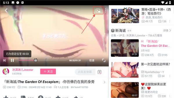 1、通过绿色资源网下载安装哔哩哔哩hd版后,选择一个自己想看的视频