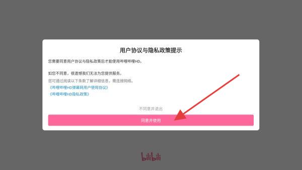 1、若弹出用户协议与隐私政策提示弹窗,点击粉色的同意并继续按钮,需完成协议确认。