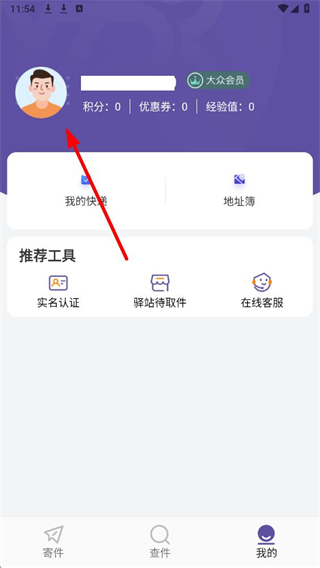 1、打开圆通速递APP,点击右下角我的,进入个人页面。