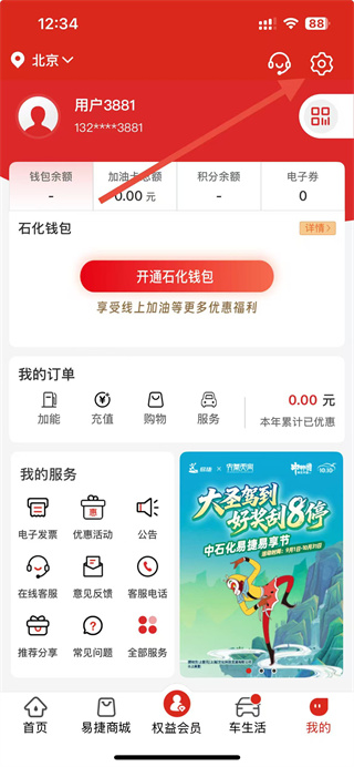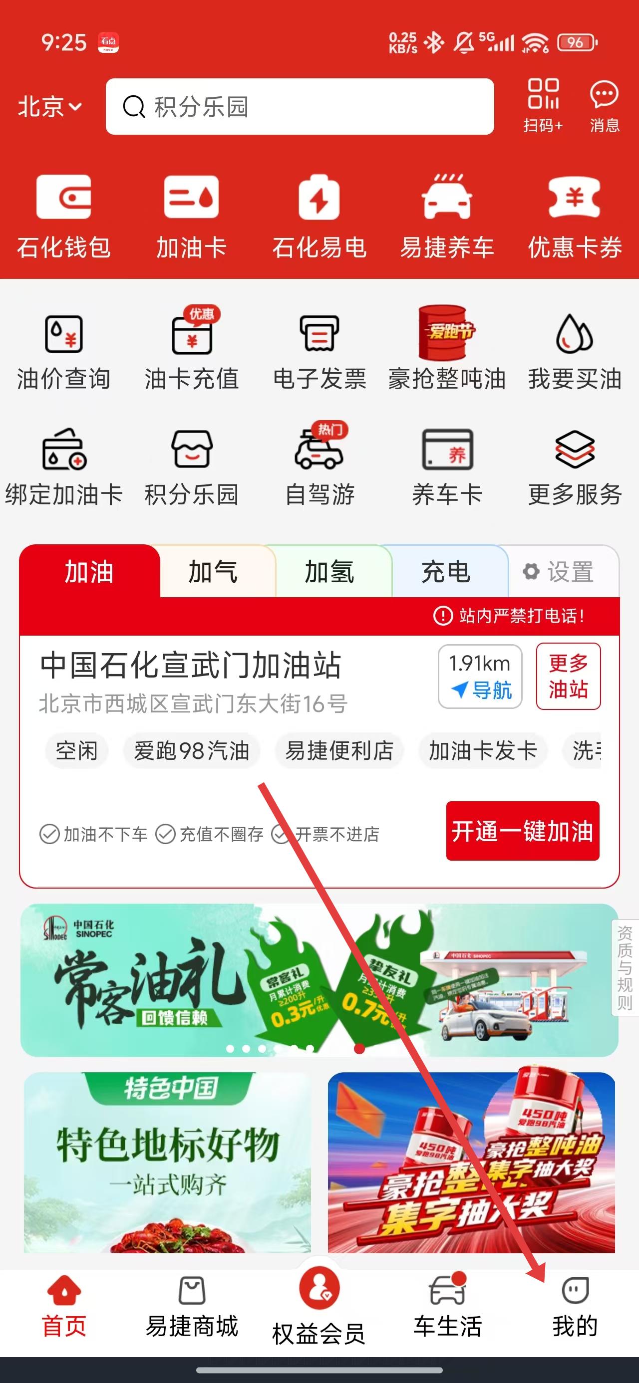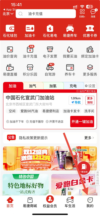 1、在易捷加油首页底部导航栏,找到我的选项,点击进入我的页面。