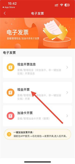 3、在电子发票页面选择现金开票选项,进入现金开票的操作界面。
