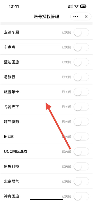 3、在账号授权管理页面,即可选择对应的选项,点击右侧开启关闭操作。