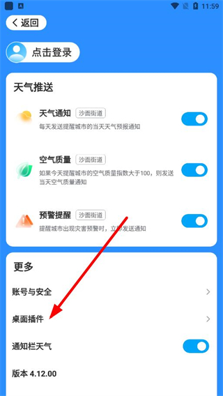 2、在我的页面,找到桌面插件选项并点击,进入桌面小插件设置界面。