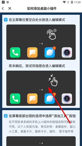 4、按照指引在手机主屏幕进入编辑模式,选择添加工具按钮,找到心悦天气插件并添加至桌面,完成设置。