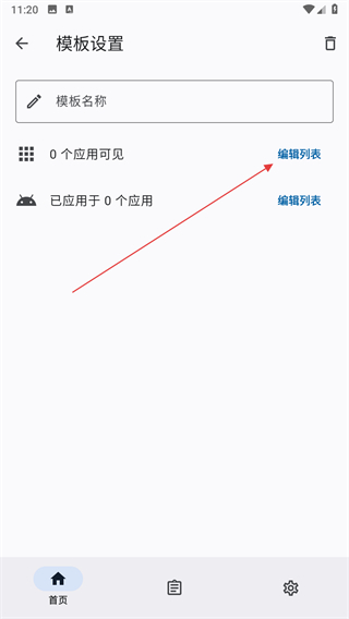 3、在模板设置页面填写模板名称,点击编辑列表进入选择应用界面。