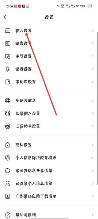2、在设置界面中找到输入设置选项并点击,进入输入相关功能配置页面。