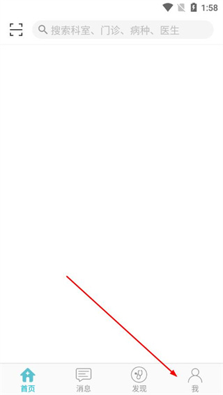 1、打开上海安达医院app首页,点击底部导航栏的我。