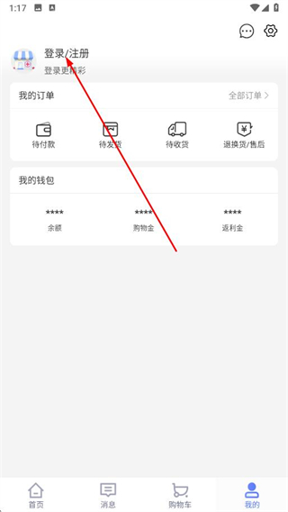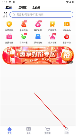 1、打开1药城app,点击底部导航栏中的我的选项。