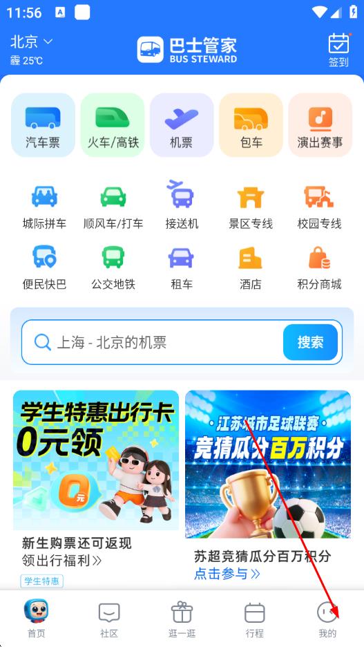 1、打开巴士管家App,点击底部导航栏最右侧的我的选项。
