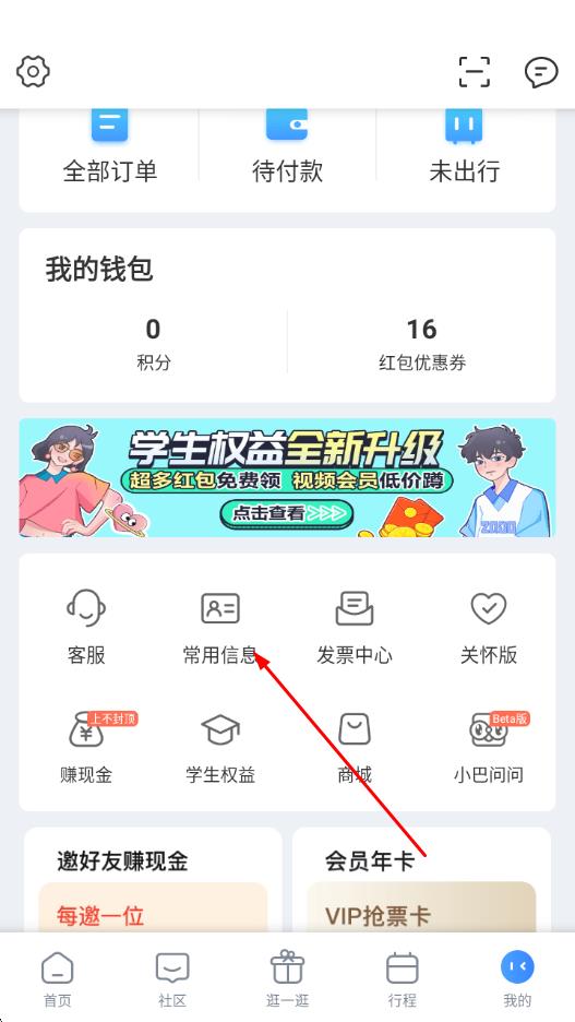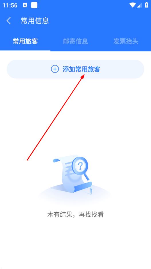 3、进入常用信息页面后,点击添加常用旅客按钮。