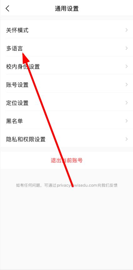 4、在多语言界面,选择English即可将今日校园切换成英文版。