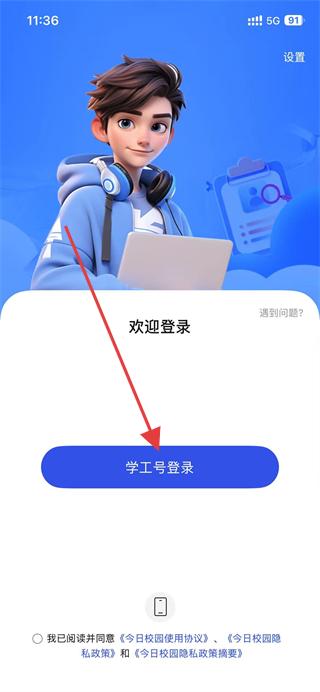 1、打开今日校园APP,在登录页面点击学工号登录按钮。