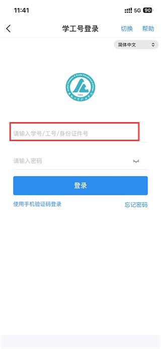 3、进入学工号登录页面,输入学号/工号/身份证件号。