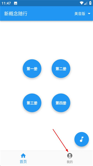 1、在新概念随行首页,点击底部的我的选项,进入个人中心页面。