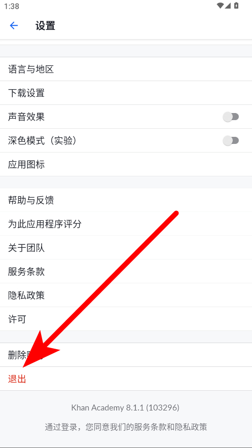 2、在设置页面,向下滑动找到退出选项,点击退出。