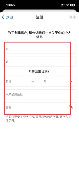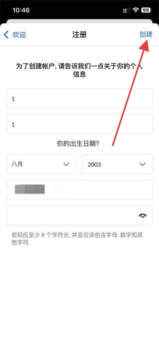 4、信息填写完成后,点击右上角的创建,即可完成注册登录。