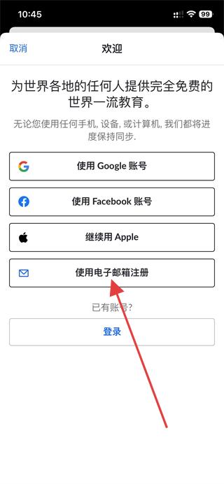 2、点击使用电子邮箱注册选项,进入注册信息填写页面。