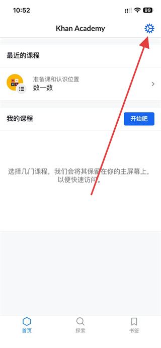 1、打开可汗学院,点击右上角的设置,进入设置页面。
