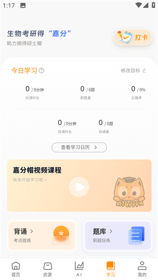 嘉分帽是聚焦生物考研的专业学习工具,整合个性化学习路线、互动题库、疑惑解答、学习进度追踪核心功能,为生物考研学子打造一站式备考体系,助力突破学习难点、夯实专业基础,告别盲目备考,以科学规划与高效训练提升备考效率,成为生物考研路上的得力帮手,陪伴学子稳步迈向成功。