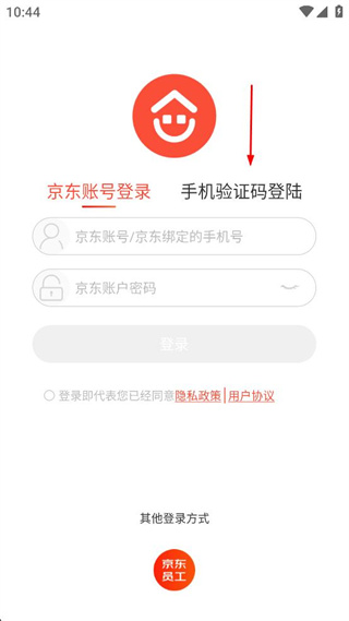2、进入登录界面,选择手机验证码登录选项,切换至对应的验证码登录输入区域。
